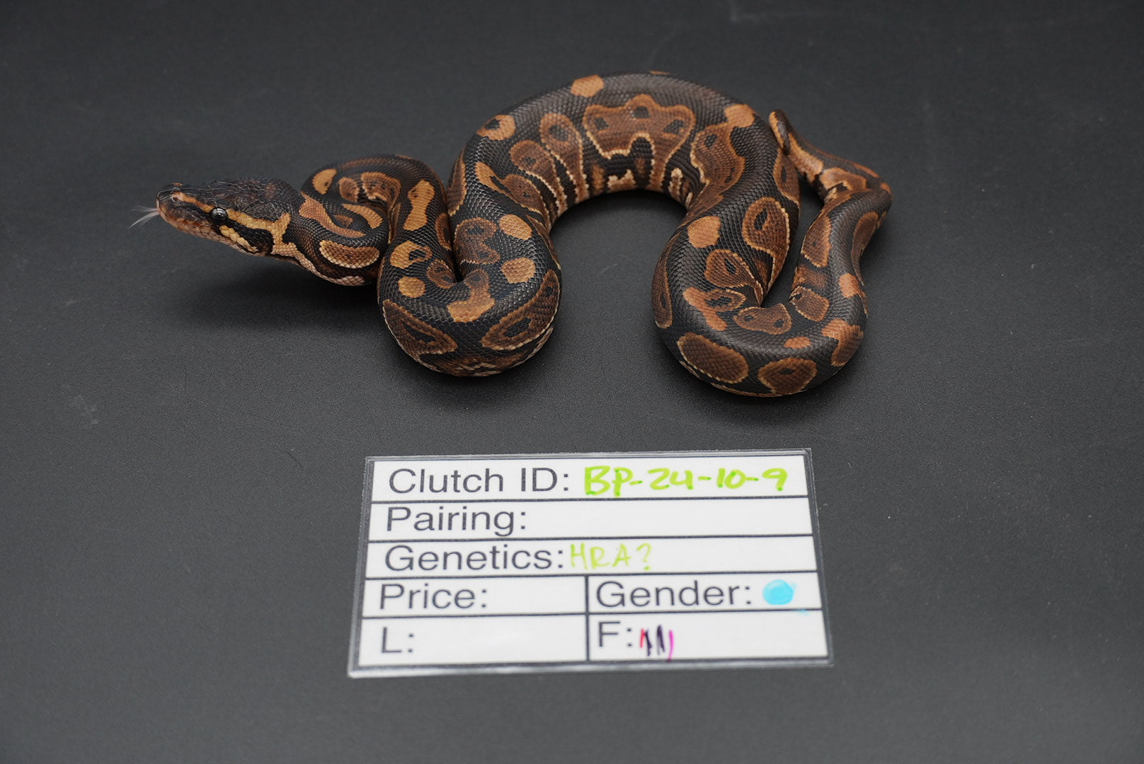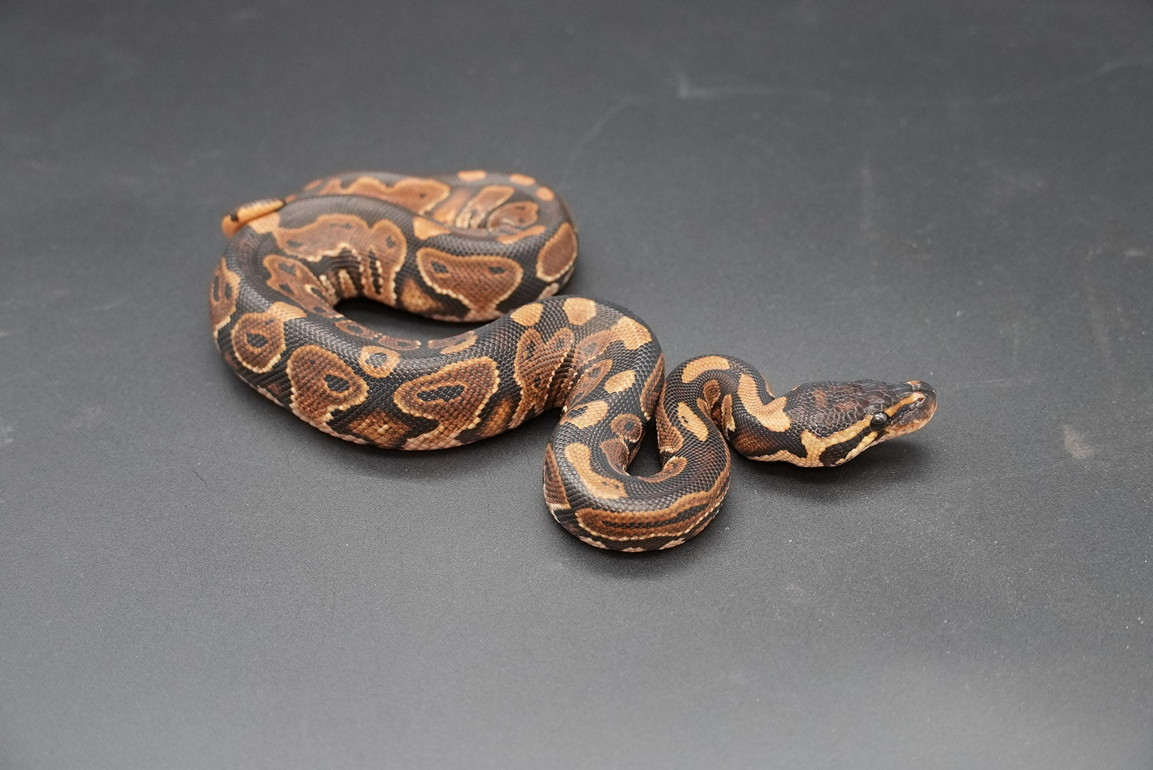 Male het red axanthic. Very sweet, eating frozen thawed rat pups