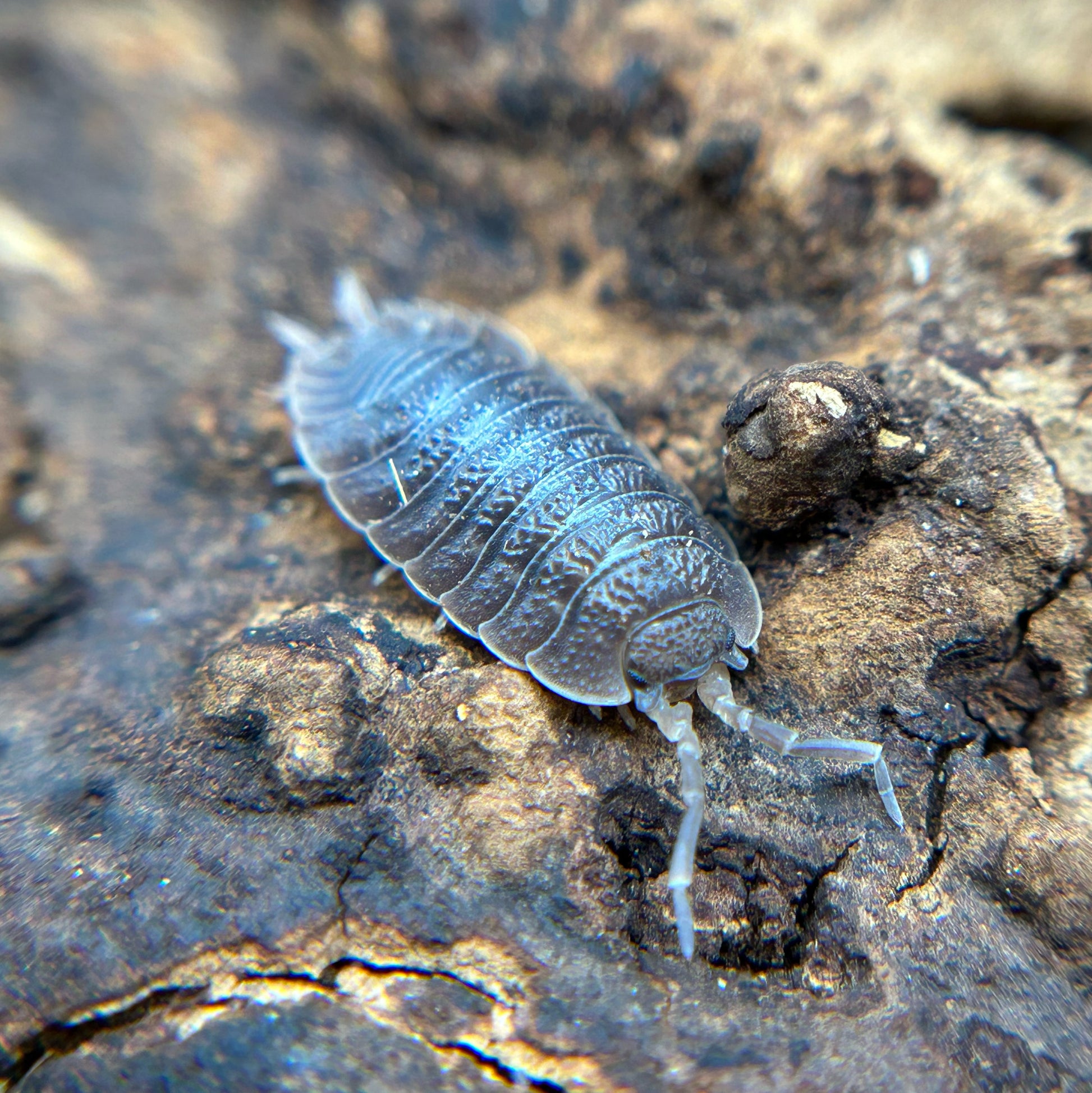 Care and breeding: A 2+ inch layer of substrate should always be used. We like to use sphagnum moss in one corner of our tubs, sprayed well once per week. There should be multiple pieces of cork bark and hardwood (oak bark works great) in the enclosure to provide hiding opportunities, as well as a food source. A small layer of leaf litter should be added on top of the substrate, again this acts as somewhere to hide as well as a food source. Always remember if you are collecting your own leaf litter or wood to always collect from an area far away from communities or anywhere that could have possibly been sprayed with pesticides. Temperatures should be kept around 70-80 degrees year-round. It's always a good idea to add new bloodlines and fresh substrate to a colony every 6months-1year to help prevent crashes. Try to avoid burning candles or using harsh chemicals around your isopods, this can sometimes result in a colony crash. If all the above conditions are met, your isopods should breed with no problem. As always, please reach out if you have any questions or need any advice.